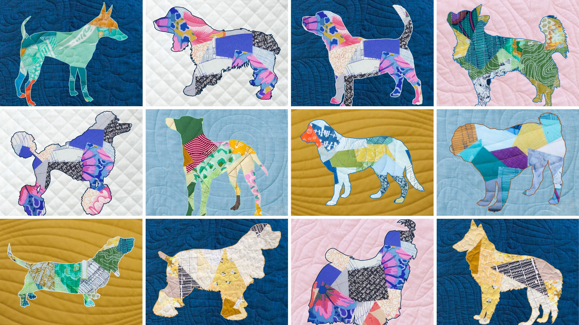 Scrappy Applique Pup patterns all include multiple sizes for lots of project options!...